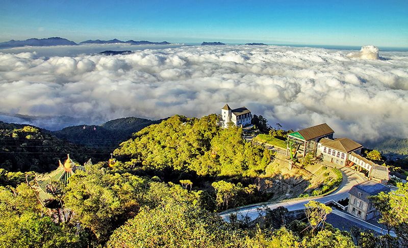 Le climat de Ba Na est unique. La pluie ne tombe qu’à mi-hauteur de la colline, laissant son sommet noyé dans un superbe ciel clair et des vues spectaculaires.