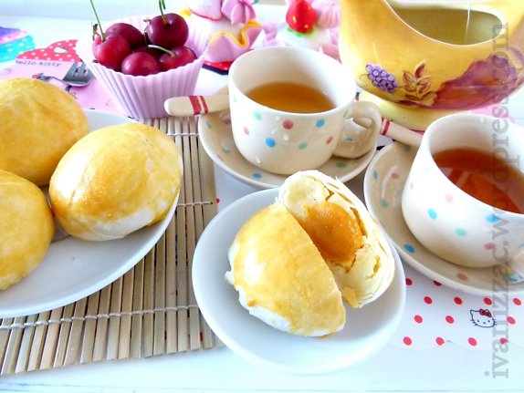 L’haricot et le taro, après avoir été réchauffés dans une marmite, ils sont mélangés à du sucre et à du gras pour créer une saveur particulière. Le gras qui sert pour la farce est coupé en filaments et mélangé au sucre pour le conserver plus longtemps. Le jaune d’œuf est placé au milieu du gâteau. On choisit les ingrédients pour fabriquer la farce en adéquation avec chaque catégorie de gâteau. Déguster ce gâteau à la fois sucré, parfumé et légèrement gras en buvant du thé autour d’une table avec des amis ravie tout le monde.