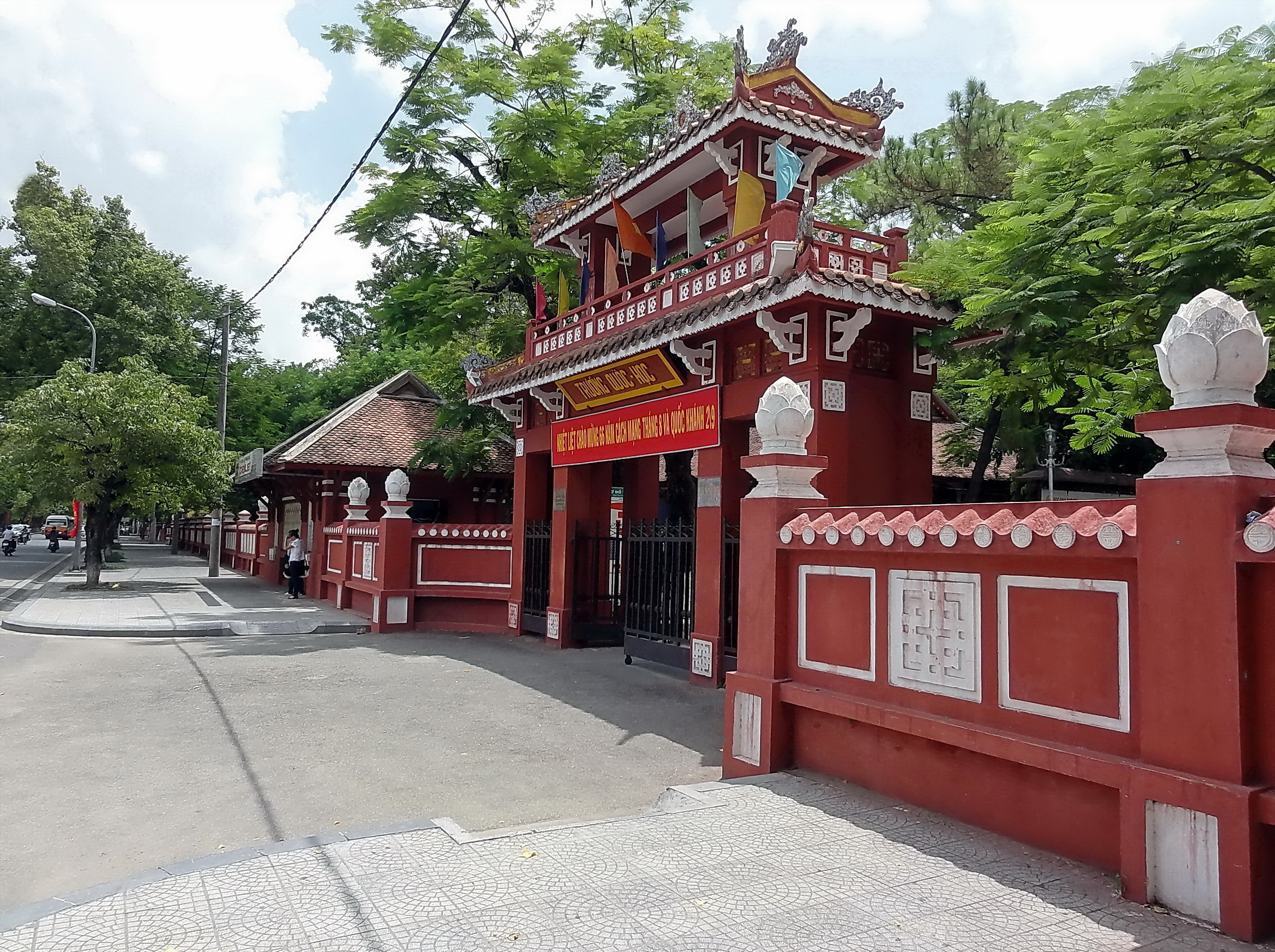 L’édifice abrite des salles de classe, le dortoir, les résidences destinées au recteur, vice-recteur, enseignants et aux autres employés du collège. La plupart de ces ouvrages sont encore en bon état. Le Collège accueillait des membres de la famille royale, des enfants des mandarins, mais aussi des élèves brillants issus de familles modestes. Au début, les élèves étudiaient toute l’année, à l’exception de quelques semaines autour du Nouvel An lunaire. Plus tard, ils eurent droit également à des jours fériés. Le programme d’enseignement s’inspirait notamment des livres classiques du confucianisme, de l’histoire vietnamienne et du code Gia Long.