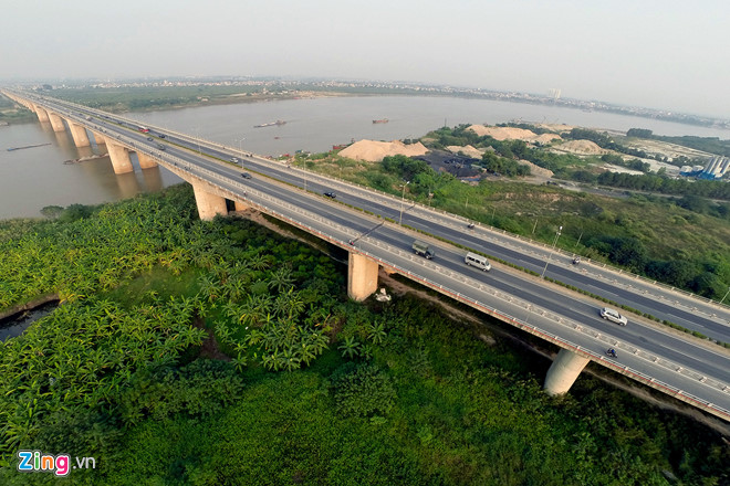 S’étendant sur 3084m, le pont Thanh Tri a été mis en circulation en 2007. À l’époque, il était le plus grand pont à enjamber le fleuve Rouge.