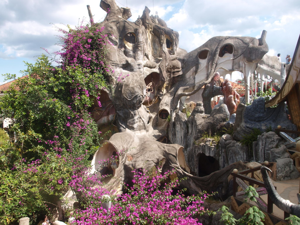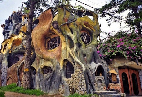 Chère amie, la Crazy House, que l’on peut traduire la Maison Folle en français, est une pension qui rend hommage à la nature. La demeure se présente dans un dédale de formes toutes aussi étranges les unes que les autres avec des arbres géants, des passerelles à travers les branches sculptées. Des champignons en béton, de la corde en forme de toile d’araignée, un géant de pierre, des fleurs, des vignes, etc...