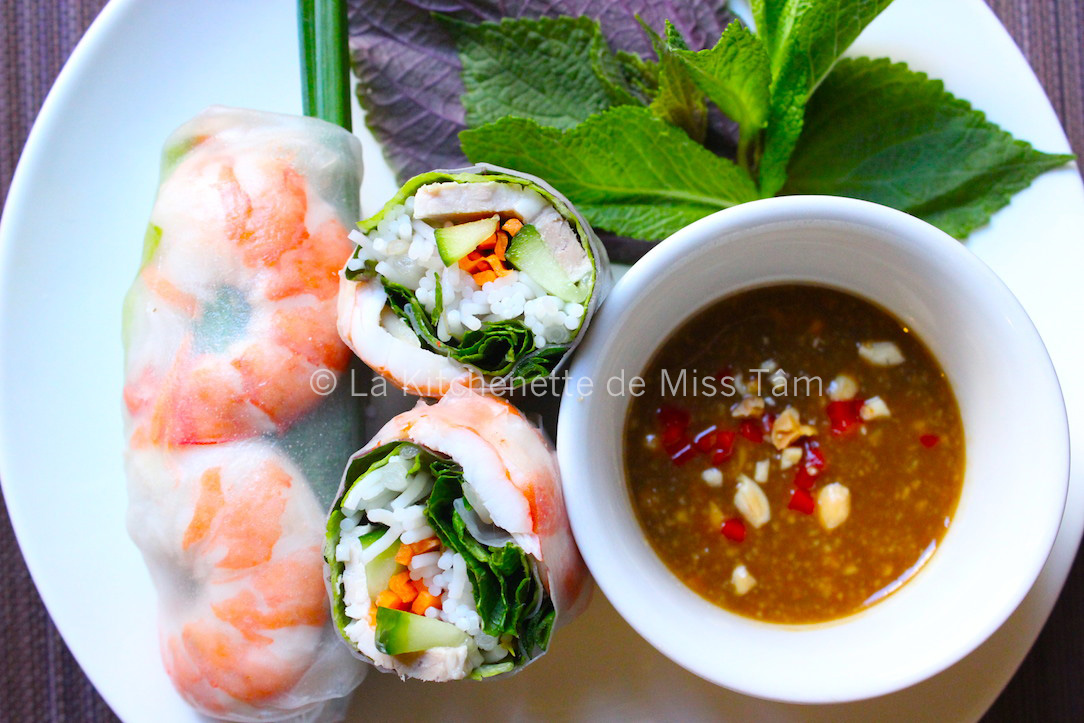 Nos rouleaux de printemps vietnamiens diffèrent également des pâtés impériaux frits, bien de chez nous aussi et connus sous le nom de «nem» (ou «nem rán»), par les ingrédients qui composent la farce. En général, on enveloppe des crevettes, des lamelles de porc, de la laitue, du soja, de la menthe, du coriandre et d’autres herbes aromatiques dans la galette de riz. Il existe aujourd’hui des variantes avec du poulet ou du bœuf accompagnés de concombre, de carotte, ou encore d’omelette, toutes coupées en julienne.