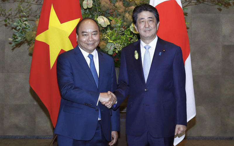 Le Premier ministre vietnamien Nguyên Xuân Phuc et son homologue japonais Shinzo Abe lors de leur entretien du 1er juillet 2019 |
