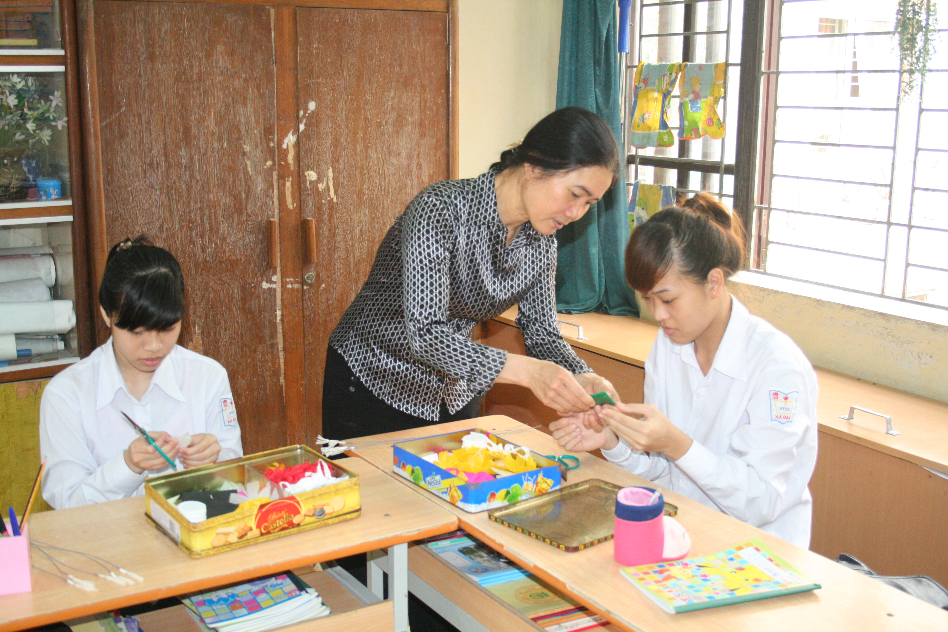 Après les cours, les enfants apprennent à faire des cadeaux pour offrir aux professeurs et aux amis (photo : Tran Manh/thieunien.vn)