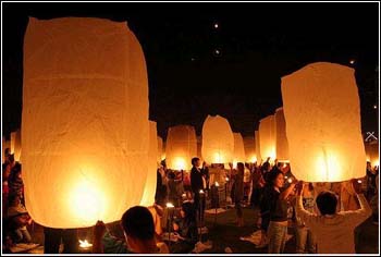 Les gens s'assoient par terre, les jambes croisées. Ils joignent les mains devant l'autel et se tournent vers la lune. Un vieux maître de rituels va prier à haute voix la divinité de la lune de recevoir les offrandes et de bénir les gens présents. Après la cérémonie, vient ensuite un grand banquet. La tradition veut aussi que des lanternes en papier soient lâchées dans le ciel et dans la rivière, afin de balayer les malchances et de chasser la tristesse.