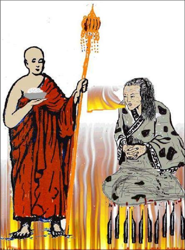 Thanh De, au Royaume des Morts, prit conscience de la souffrance après âtre devenue sensible à la faim et à la soif. Les difficultés qu’elle rencontrait l’amenaient à s’éloigner au fur et à mesure de sa nature méchante et à connaître le remords.