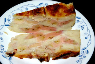 Il existe beaucoup de variations en ce qui concerne la recette. La version la plus simple est l’utilisation du pain rassis trempé dans du lait, du lait de coco, de la cassonade ou du sucre brun, et des bananes. Rien d’autre. Dans certaines recettes, on ajoute un ou deux œufs pour consolider le gâteau, voire un peu de farine, ou encore du lait concentré sucré à la place du lait cru, d’autres parfument au rhum, à la vanille ou même à l’extrait de feuilles de pandanus. Le pain rassis est le plus souvent remplacé par du pain « frais » du jour.