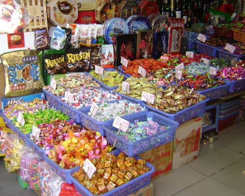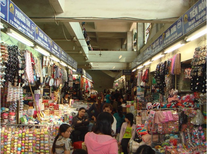 Le marché Dong Xuan vend toutes sortes de marchandises, des plus simples au plus compliquées ; des denrées et marchandises précieuses et rares, provenant de toutes les régions du pays, y sont présentes ; étoffes, soieries, velours, légumes, produits aquatiques vivants, pousses de bambous de forêts, fruits des montagnes… Un secteur particulier du marché est réservé aux gourmands qui se régaleront de vermicelles, nems, riz gluants, compotes, gâteaux de riz gluant en granules…