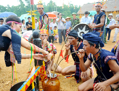 ![]() Des membres des ethnies du Tay Nguyen au village culturel et touristique des ethnies du Vietnam (photo : Internet)
