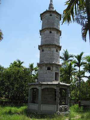 À proximité du mur d’enceinte, une tour en pierres blanches de 13 mètres de long a été bâtie en 1646 pour abriter les reliques du moine Chuyết Chuyết, fondateur de Bút Tháp. Cette tour, baptisée Bao Nghiem, est librement inspirée des Stûpas indiens, une sorte d’édifice funéraire. La tour est composée d’un rez-de-chaussée, surmontée de quatre pavillons à étages, symbole des vertus de la pratique bouddhiste. En son sommet, le petit dôme évoque le nirvana, et la flèche, la compassion de Bouddha. Autrefois, la pagode était connue sous le nom de Ninh Phúc Tự, dit Bonheur Tranquille. Elle a été renommée au 19ème siècle par le roi Tự Đức, « le roi poète ». En effet, alors que celui-ci était venu se recueillir dans ce lieu de pèlerinage, il remarqua que cette tour en pierres blanches ressemblait étrangement à un pinceau. Il appela ainsi cette pagode Bút Tháp.