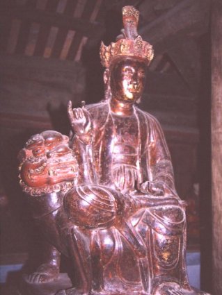 Le sanctuaire principal présente des antiquités précieuses : des statues bouddhistes, des arhats, des objets religieux, et la merveilleuse statue Quan Yin. Celle-ci, réalisée par le sculpteur Zhang en 1656, à mille yeux et mille bras, constitue une œuvre incroyable et caractéristique de cette grande religion. Le moulin à prières établi au centre de la pagode, derrière le pont en dos d’âne, est décoré de motifs sculptés. Ces motifs représentent les neuf consciences de Bouddha : la conscience visuelle, la conscience de l’ouïe, la conscience de l’odorat, la conscience du goût, la conscience du corps, la conscience mentale, la conscience de l’opinion, la conscience des actes, et la conscience de l’énergie vitale.