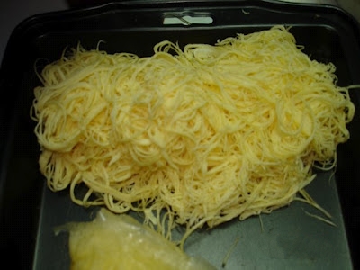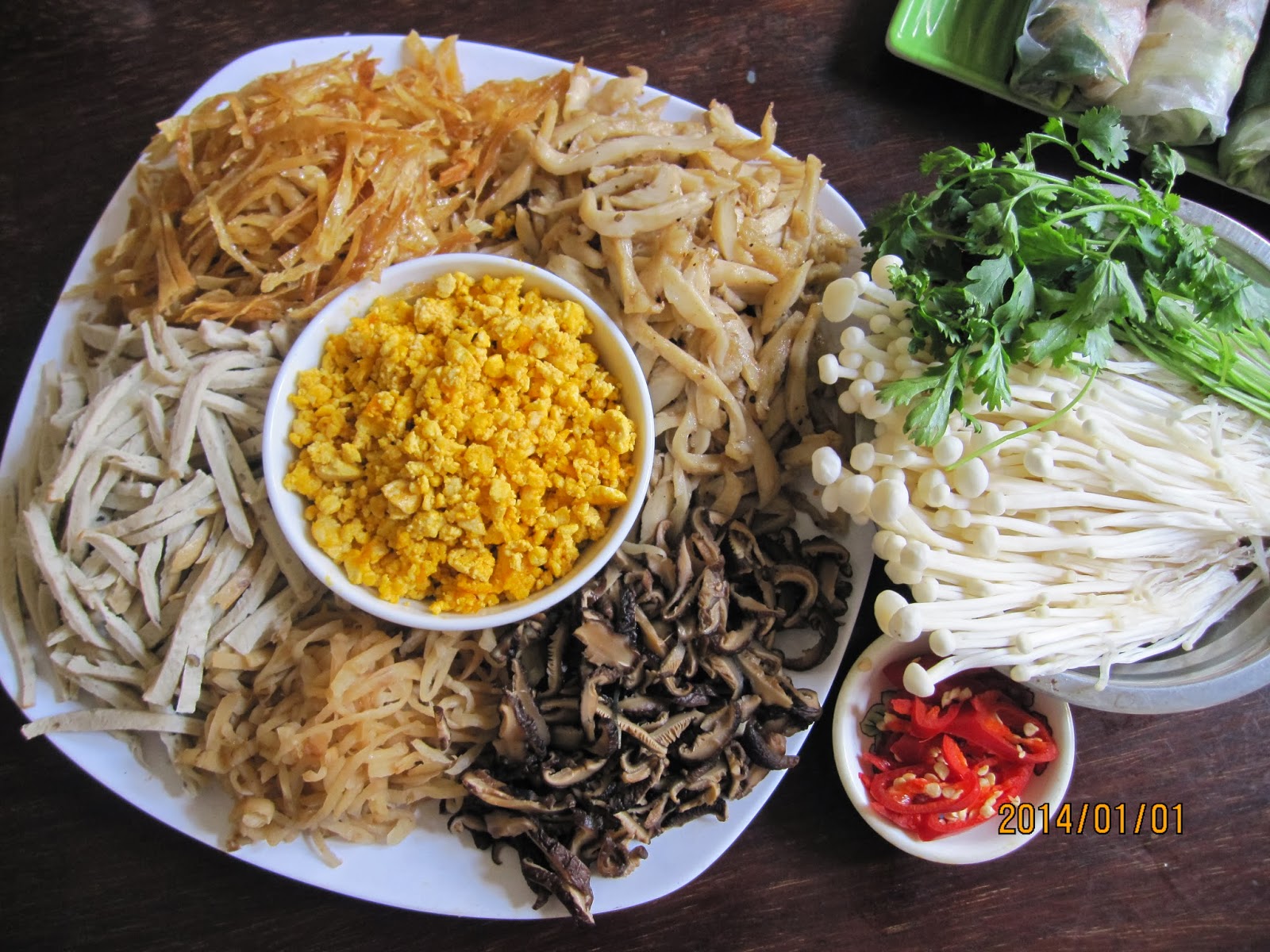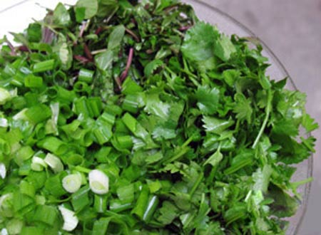 Les garnitures du bun thang exigent une préparation minutieuse. Chaque ingrédient a son importance. Tout doit être coupé en julienne, en fines lamelles. Le goût sera moins original sans la sauce de crevettes en saumure. Mais le must, c’est d’ajouter de l’essence de cà cuống, un petit scorpion d’eau en français, un véritable nectar rare, précieux, et hors de prix, difficile à trouver de nos jours. Cette essence à utiliser au compte-goutte, offre un parfum floral puissant très typique des plats du nord.