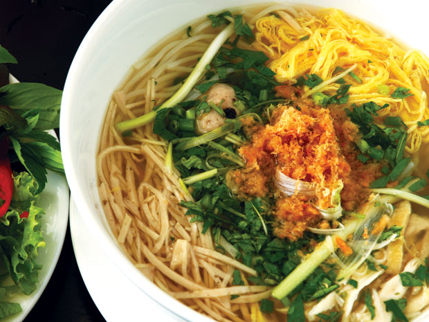 Le bouillon est primordial. Il se compose de poulet, d’os de porc, de crevettes et de calamars séchés, d’oignons et de gingembre. Parfois on y met des sangsues de mer séchées très prisées dans la cuisine du nord.