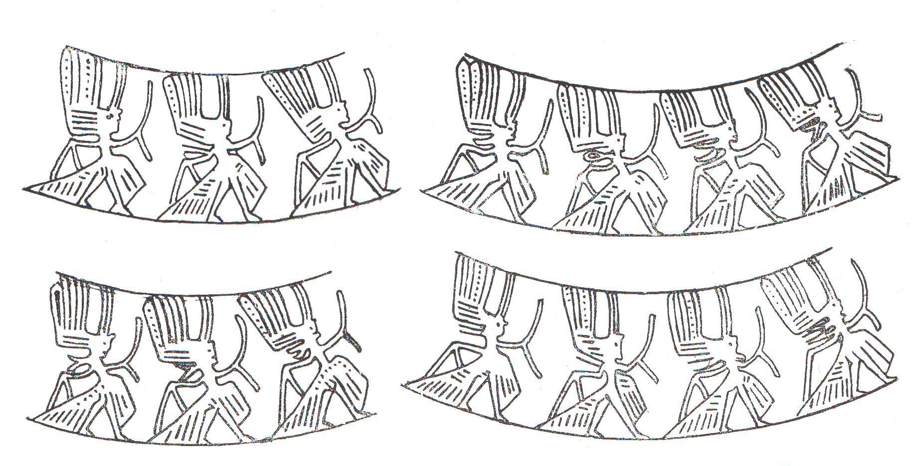 Le plateau est orné au centre d’une étoile autour de laquelle s’organisent, en registres concentriques, diverses scènes sans doute liées à des rites de fécondité aujourd’hui disparus. Des guerriers parés de plumes sont représentés défilant vers la demeure du défunt, une maison à pilotis dont la plate-forme supporte des tambours recevant les grains de riz que pilent d’autres personnages. Emportant des Guerriers-esprits, les « barques de morts » ornées de têtes et de queues d’oiseaux évoluent sur la caisse. Le corps vertical de l’instrument, des guerriers-esprits alternent avec des motifs géométriques.