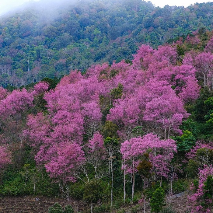 C'est dans la province de Hà Giang, plus précisément sur le plateau calcaire de Dông Van, que les cerisiers fleurissent le plus tard au Vietnam, généralement en février, voire parfois en mars. Alors qu'en fin d'année, d'octobre à décembre, Hà Giang est connu comme le royaume des fleurs de sarrasin, au printemps, il se transforme en un véritable paradis des cerisiers en fleurs. En effet, on peut observer ces magnifiques fleurs un peu partout, que ce soit dans les jardins des maisons ou dans les montagnes environnantes.
