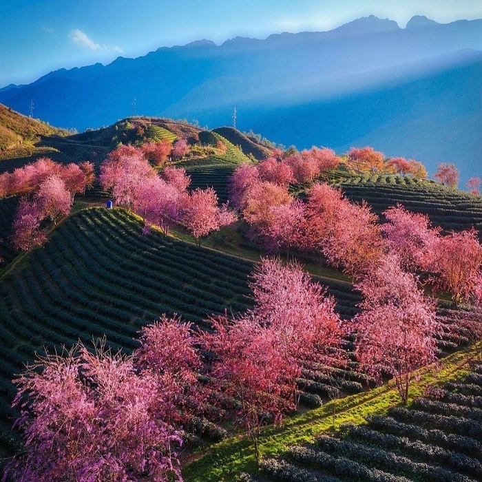 Si vous visitez le Nord du Vietnam en janvier, Lào Cai est sans aucun doute une destination de choix pour ses paysages majestueux, ainsi que pour ses jardins de cerisiers en fleurs. À Lào Cai, et plus particulièrement à Sapa, vous pourrez admirer ces magnifiques fleurs au siège du comité populaire du district, autour du lac du parc central, sur le mont Hàm Rông, ou encore derrière la cathédrale.