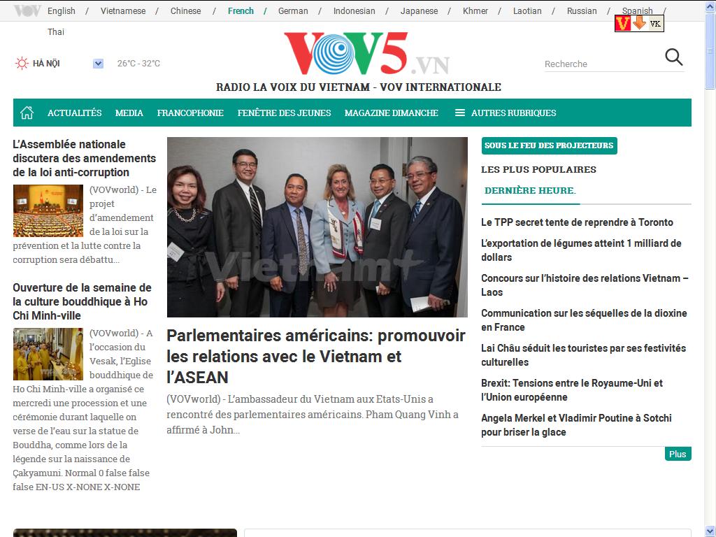 Cher Monsieur Minouflet, cette année, nous célébrons le 42ème anniversaire de la libération du Sud et de la réunification nationale. Nous avons évoqué ce sujet dans la chronique du jour du 30 avril dernier et dans un reportage diffusé le même jour, consacré à Tran Mai Hanh, l’auteur de «1.2.3.4-75» un livre publié récemment sur cette question. Nous vous invitons à retrouver cette émission sur notre site web. Vous avez remarqué que notre site http://vovworld.vn/fr-CH.vov a été modifié pour être plus convivial. Sur la bannière située juste au dessous du logo de notre radio, vous retrouverez : Actualités, Media, Francophonie, Fenêtre des jeunes et Magazine Dimanche et les autres rubriques dans le menu déroulant. Media vous propose des reportages-photos, des vidéos et des nouvelles télévisées.