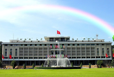 Cet édifice, autrefois connu sous le nom de Palais de l'Indépendance, fut conçu par l'architecte Ngô Viêt Thu, premier lauréat du Prix de Rome en 1955. Le palais original, construit entre 1868 et 1873 par les colonisateurs français, fut utilisé comme bureau du Gouverneur de la Cochinchine, puis par Gouverneur-général de l'Indochine Française. Puis à l'indépendance, en 1954, il devient logiquement le Palais Présidentiel. A partir de 1966, baptisé Palais de l'Indépendance, il accueille les Chefs successifs de l'Etat du Sud Vietnam.