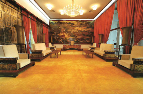 On y dénombre plus d’une centaine de chambres ainsi qu’une salle de réunion du conseil du Cabinet et des salles de travail pour le président et le vice-président.
