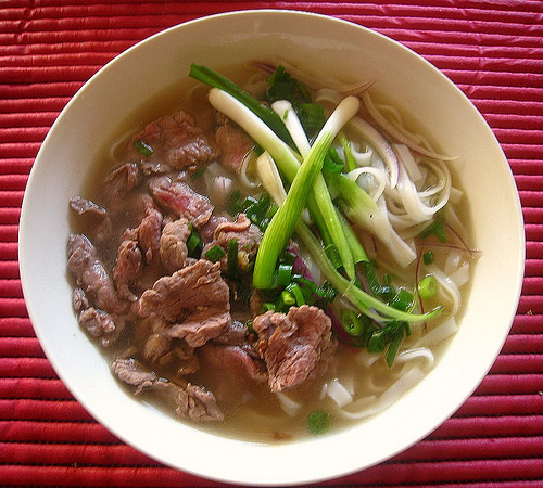 Le petit déjeuner le plus commun au Vietnam est … le Pho, la soupe traditionnelle vietnamienne agrémentée de toutes sortes de légumes, d’herbes, de vermicelle de riz et de viande, principalement le bœuf ou le poulet.