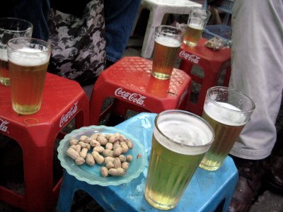 La bière pression arrive en tête de la liste. Elle est vendue à chaque coin de rue sur les terrasses de petits restaurants qui s'accaparent le trottoir pour y disposer leurs minuscules tables et tabourets en plastique coloré. La bière est délicieusement rafraîchissante et très bon marché. Elle est servie à la pression. En fait, elle provient d'une cuve d'inox rectangulaire de laquelle pend un drain en plastique. Lorsqu'on commande un verre, la serveuse siphonne le liquide, puis d'un geste rapide, alors que le breuvage commence à couler.