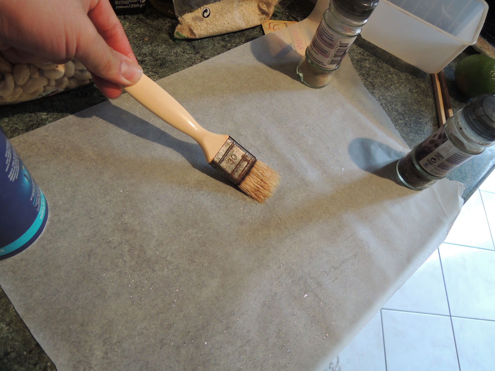 Préparez votre moule en déposant le papier sulfurisé au fond. Répandez du sésame de manière homogène sur celui-ci.
