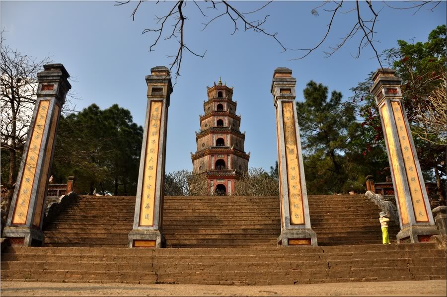 Sous le règne des rois Nguyen, à partir de 1802, la pagode a de nouveau été restaurée plusieurs fois. A l’époque du roi Thieu Tri (1841 - 1847), plusieurs ouvrages architecturaux y furent édifiés, dont la tour octogonale Phuoc Duyen à 7 étages, d'une hauteur totale de 21 m, rappelant le chiffre miraculeux du bouddhisme.