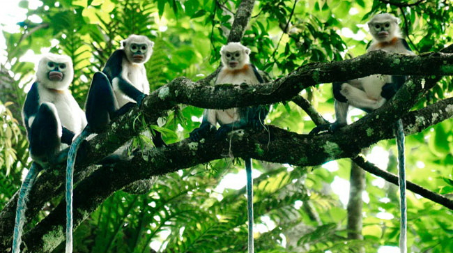 Cher ami, on recense une trentaine de parcs nationaux sur le territoire vietnamien. Nous avons choisi de vous présenter deux d’entre eux : le plus connu et le plus confidentiel. Situé dans la province de Ninh Binh, à 130km de Hanoï, Cuc Phuong, premier parc national, a été créé en 1966. Ce parc abrite de multiples espèces rares, voire menacées d’extinction comme le Langur de Delacour - un primate. Moins de 300 individus cohabitent sur les quelque 25.000 hectares du parc avec d’autres animaux fascinants comme la panthère nébuleuse, le serrow - sorte d'hybride entre la chèvre et l'antilope ou l'écureuil à ventre rouge.