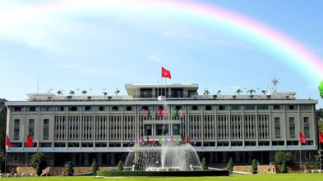 Cet édifice, autrefois connu sous le nom de Palais de l'Indépendance, fut conçu par l'architecte Ngô Viêt Thu, premier lauréat du Prix de Rome en 1955. Le palais original, construit entre 1868 et 1873 par les colonisateurs français, fut utilisé comme bureau du Gouverneur de la Cochinchine, puis par Gouverneur-général de l'Indochine Française. Puis à l'indépendance, en 1954, il devient logiquement le Palais Présidentiel. A partir de 1966, baptisé Palais de l'Indépendance, il accueille les Chefs successifs de l'Etat du Sud Vietnam.