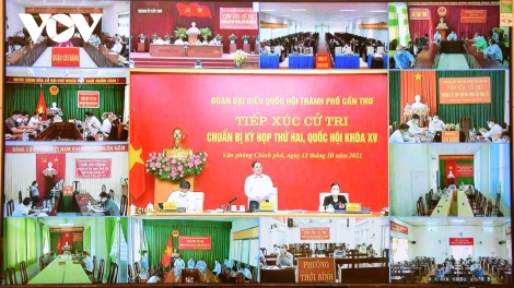 (VOVWORLD) - Pour préparer la deuxième session de l’Assemblée nationale, 15e législature, le Premier ministre Pham Minh Chinh et des députés de Cân Tho ont eu ce mercredi une rencontre virtuelle avec les électeurs de la ville.