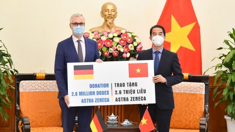 (VOVWORLD) - L’ambassade d’Allemagne au Vietnam a remis le 27 septembre à Hanoï 2,6 millions de doses d’AstraZeneca au ministère vietnamien des Affaires étrangères.