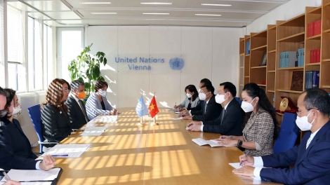 (VOVWORLD) - Le président de l’Assemblée nationale Vuong Dinh Huê a rencontré ce lundi 6 septembre la directrice générale de l’Office des Nations Unies à Vienne, Ghada Fathi Waly. Le chef de l’organe législatif vietnamien a souligné le rôle important de l’ONU dans la politique étrangère vietnamienne et dans le développement national. Il a remercié l’ONU pour son soutien dans la lutte contre la pandémie de COVID-19 et a sollicité son aide pour la période post-pandémique.