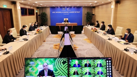 (VOVWORLD) - À l’invitation de la Première ministre néozélandaise Jacinda Ardern, le 16 juillet, dans la soirée, depuis Hanoi, le président vietnamien Nguyên Xuân Phuc a participé à la réunion informelle et virtuelle des dirigeants du Forum de coopération économique Asie-Pacifique (APEC) sur la résilience à la pandémie de Covid-19 et sur le redressement économique.