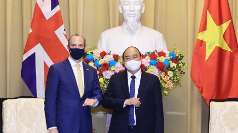 (VOVWORLD) - Le ministre des Affaires étrangères et du Développement britannique Dominic Raab a été reçu ce mardi à Hanoï par le président de la République Nguyên Xuân Phuc.