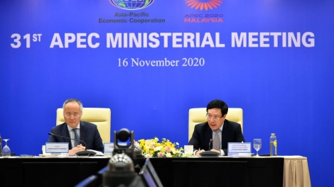(VOVWORLD) - Le vice-Premier ministre et ministre vietnamien des Affaires étrangères Pham Binh Minh a participé lundi à la visioconférence des ministres des Affaires étrangères et de l’Economie du Forum de coopération économique Asie-Pacifique (APEC), qui s’est tenue sous les auspices de la Malaisie.