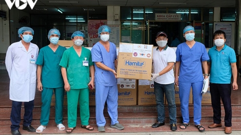 (VOVWORLD) - Le bureau de correspondance de la Voix du Vietnam au Centre a remis jeudi 3000 surblouses, d’une valeur de plus de 400 millions de dongs au personnel médical de 4 hôpitaux de Danang et d’un hôpital de Quang Nam, les régions les plus touchées par la pandémie de covid-19.