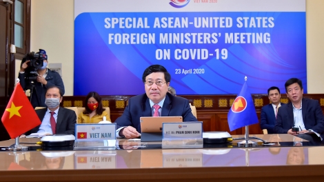 (VOVWORLD) - En tant que représentant du pays président de l’Asean en 2020, le vice-Premier ministre et ministre des Affaires étrangères du Vietnam Pham Binh Minh a tenu ce jeudi matin une visioconférence spéciale relative à la pandémie de Covid-19, en réunissant ses homologues aséaniens et américain.