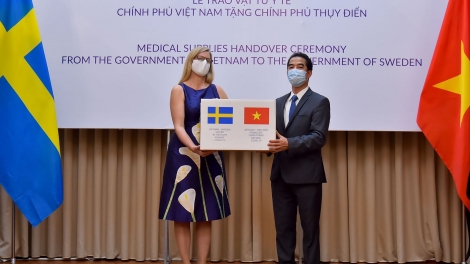 (VOVWORLD) - Le vice-ministre des Affaires étrangères Tô Anh Dung a remis ce vendredi 100.000 masques en tissu antibactérien fabriqués au Vietnam à la Suède pour combattre le Covid-19.