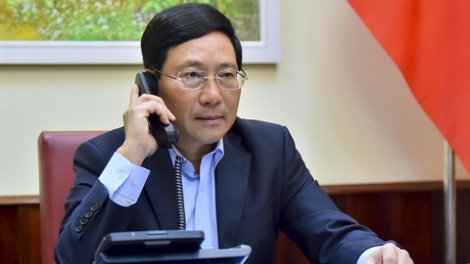 (VOVWORLD) - Le vice-Premier ministre et ministre vietnamien des Affaires étrangères Pham Binh Minh s’est entretenu au téléphone le 31 mars avec le ministre japonais des Affaires étrangères Motegi Toshimitsu sur la coopération bilatérale face à la pandémie de Covid-19.