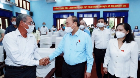 (VOVWORLD) - Le président de la République Nguyên Xuân Phuc a rencontré ce mardi l’électorat de trois arrondissements de Hô Chi Minh-ville (1er, 3e et Binh Thanh) pour l’informer du bilan de la deuxième session de l’Assemblée nationale, 15e législature.