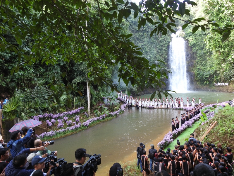 Un défilé d’ao dài et de brocatelles à la cascade de Pa Sy, dans le district de Kon Plong. Photo : VOV |