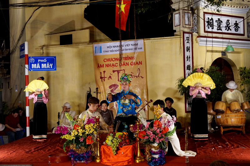 Le chant rituel du chầu văn est sorti des cérémonies de possession d’esprits du culte de la Sainte-Mère pour atterrir au milieu de l’ancien quartier de Hanoï. Son public ne se limite plus aux personnes âgées et à ceux qui restent contre vents et marées attachés aux valeurs traditionnelles. Aujourd’hui, le chầu văn attire même des touristes étrangers et beaucoup de jeunes.