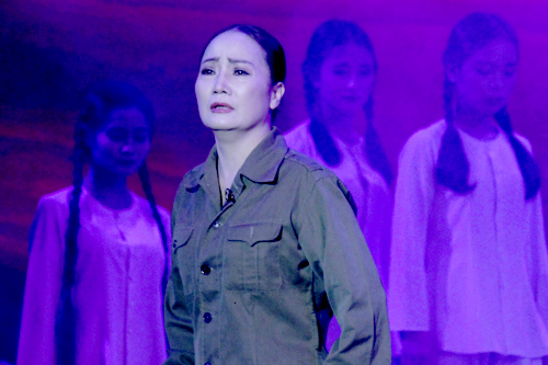 La scène du théâtre Bên Thành de Hô Chi Minh-ville représente tantôt une pente au milieu de la jungle, tantôt un village paisible avec son lac de lotus, ses fleurs, son banian séculaire… La pièce se décline en quatre actes qui correspondent à autant de morceaux de mémoire de Trân Thi Thông, l’unique survivante de ce bombardement du 31 octobre 1968. Trân Thi Thông était à la tête du groupe de combat numéro 2, surnommé « le commando » en raison de sa mission périlleuse qui consistait à remplir les cratères et à déblayer la route après chaque bombardement, pour que les camions partant vers le Sud puissent poursuivre leur chemin. Ce jour-là, elle a perdu ses treize compagnons d’arme, onze filles et deux garçons, âgés de 17 à 22 ans. Des morts tragiques mais héroïques qui ont profondément marqué Nguyên Thê Ky, président de la Voix du Vietnam et dramaturge à ses heures perdues, lui aussi originaire de Nghê An.