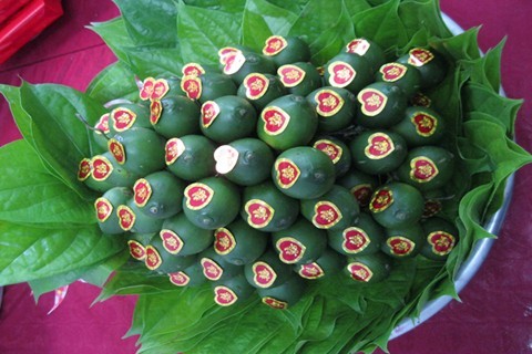 (VOVworld) - Mastiquer de la noix d’arec et de la chaux enrobés dans une feuille de bétel est une pratique ancienne dans différents pays asiatiques. Au Vietnam, elle remonterait au temps des rois Hung, il y a quatre mille ans. Les chercheurs estiment qu’elle serait apparue dans le Sud-Ouest du pays. Aujourd’hui, si ce masticatoire n’a plus la cote auprès des consommateurs, les feuilles de bétel et la noix d’arec sont toujours indispensables aux cérémonies traditionnelles, notamment dans le Sud.