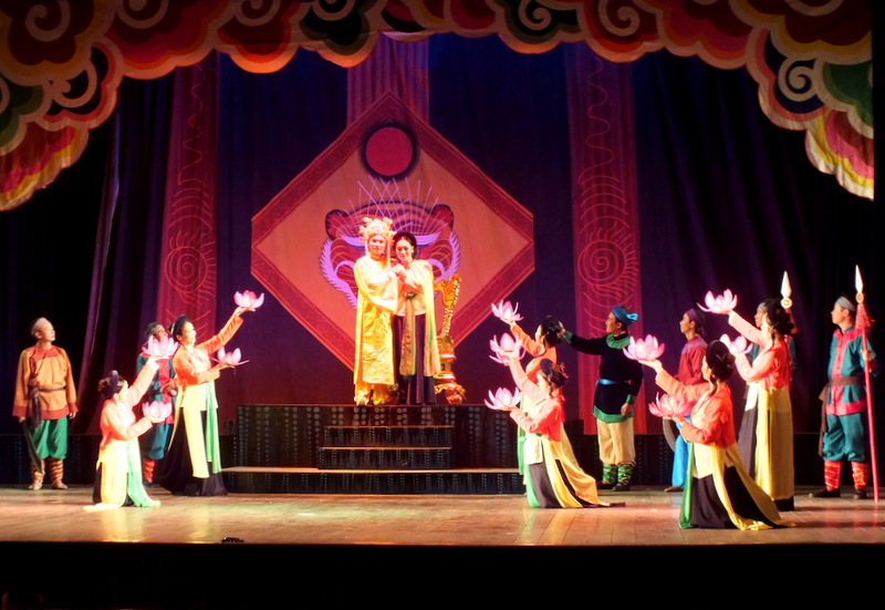 Nous sommes au Théâtre de chèo, rue Kim Ma à Hanoi. Depuis 4 ans, le vendredi soir est devenu le rendez-vous incontournable des amoureux du chèo, une forme d’opéra populaire né dans le delta du fleuve Rouge. Deux troupes se produisent alternativement, pendant une, voire une heure et demi pour le public vietnamien, et 30 à 45 minutes pour les étrangers. Les artistes présentent les extraits les plus connus du chèo, du xam, du chau van ou du ca trù, les chants traditionnels. Pour faciliter la compréhension des touristes étrangers, chaque extrait est sous-titré en anglais, en français ou en japonais.