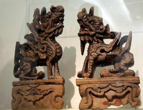 Dans la vie des agriculteurs vietnamiens, les animaux les plus familiers sont le buffle et le chien, le premier les aide à labourer le champ et le second, à garder la maison. C’est cette idée de garde qui a valu au chien une place prépondérante dans la vie spirituelle des Vietnamiens. Ils l’ont sacralisé à travers leurs sculptures. Ainsi, dans les villages typiques du Nord Vietnam, il y a toujours un chien en pierre qui garde l’entrée pour protéger les villageois des mauvais esprits. Ces chiens protecteurs sont également installés à l’entrée des maisons. Souvent, ils sont sculptés de manière figurative mais parfois aussi, il s’agit simplement d’une pierre inclinée rappelant vaguement la silhouette d’un chien. Lorsqu’ils sont installés dans des endroits plus solennels, tels que les temples, les pagodes, les sanctuaires… ces chiens prennent une forme plus stylisée, celle du nghê. A travers les siècles, le nghê vietnamien se différencie de plus en plus du qilin chinois. Si ce dernier est à mi-chemin entre le lion et le dragon, avec des cornes et des écailles, un globe dans sa bouche ou sous ses pattes, le nghê vietnamien n’a pas de cornes. Il a un corps mince et des pattes de chien. Nguyen Thanh Tung, chercheur culturel à Ho Chi Minh-ville :« Nos ancêtres ont inventé le nghê qui ne ressemble à aucune autre créature au monde. Je suis très ému de voir de nombreux étudiants venir ici admirer chaque objet, avec beaucoup de respect, comme s’ils voulaient apprendre autant que possible du patrimoine culturel national. »