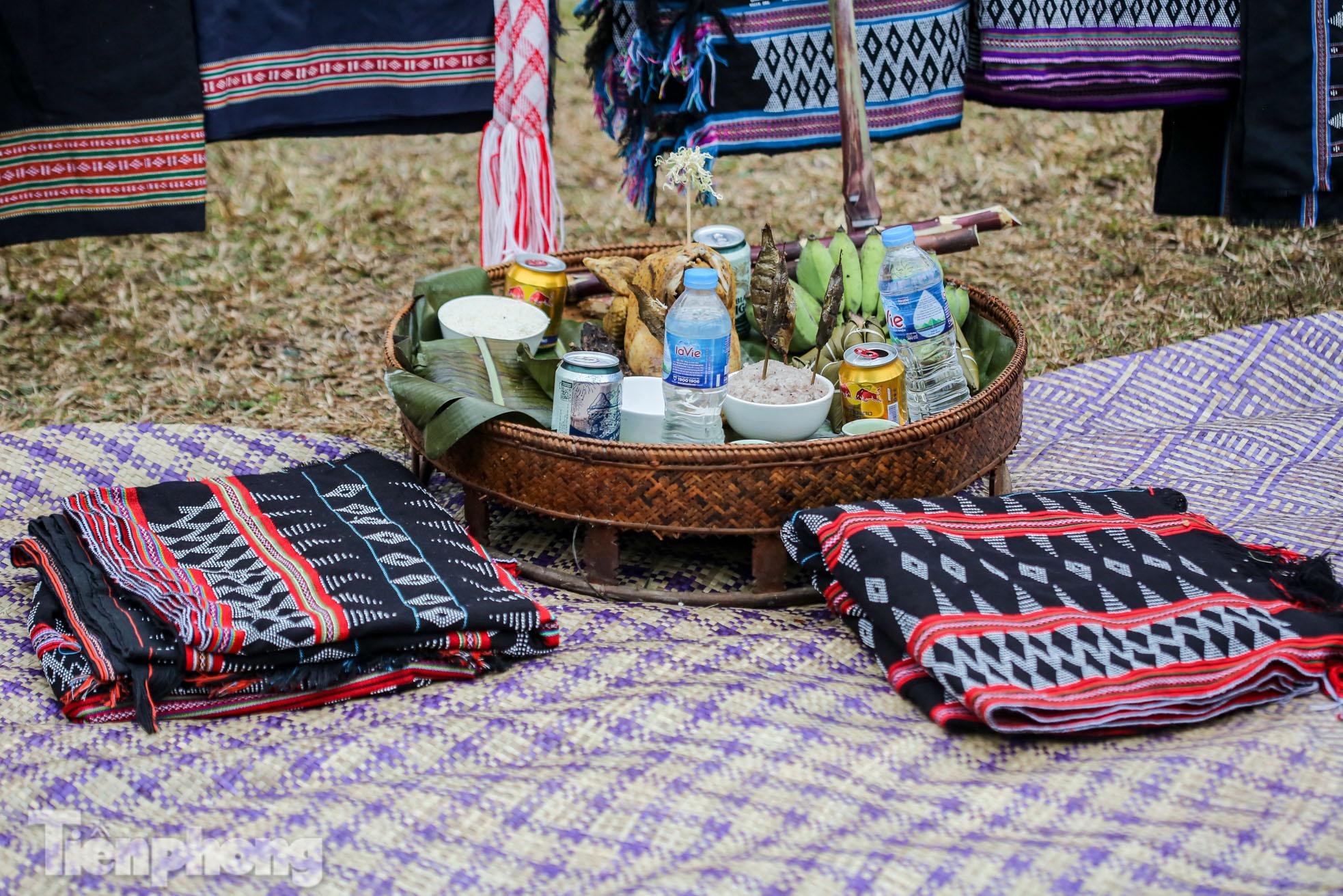 Le plateau d’offrandes comprend, outre un zèng correctement plié, un coq bouilli, quatre poissons posés sur un bol de riz gluant, deux tasses d’alcool, une tasse d’eau, une main de bananes, un bol de riz cru, quelques gâteaux traditionnels, deux tiges de canne à sucre et un troisième tige avec des feuilles au-dessus. Sur le plateau, trône une perche rituelle décorée de huit pompons de brocatelle. Le chaman invoque les divinités et les ancêtres, les prie de prendre en considération la dévotion dont font preuve à leur égard les personnes organisant la cérémonie, de leur permettre de créer des zèng toujours plus beaux pour pouvoir les vendre toujours plus cher. Après la cérémonie, les participants danseront en l’honneur des divinités, fait savoir A Viêt Thi Tâm, une tisseuse chevronnée.