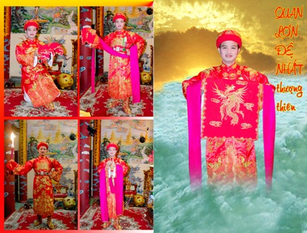 Le culte de la sainte mère est une croyance polythéiste. Pour les Viets antiques, la mère univers incarne une bonne cinquantaine de génies bien hiérarchisés qui gèrent les différentes régions de l’univers. Ils protègent et accordent à l’homme santé, bonheur, chance et prospérité. A la différence des autres religions, le culte de la mère ne promet pas au commun des mortels un nirvana ou un paradis post-mortem. Au contraire, il vise à rendre la vie terrestre plus agréable, immédiatement, ici et maintenant. Selon le professeur Ngo Duc Thinh, directeur du Centre de Recherches et de Préservation de la Culture et des Croyances Vietnamiennes1, le culte de la mère découle d’une philosophie existentialiste. Et d’après ses recherches, cette philosophie se communique par le lên đồng depuis au moins le 15è siècle. « Lên đồng est un rite au cours duquel certains des génies investissent le corps des chamans. A ce moment-là, ils ne sont plus eux-mêmes mais ne sont plus qu’un habit que revêtent les génies. Les chamans procèdent à ce rite tout d’abord pour s’attirer une bonne santé puisqu’avant de devenir chamans, la plupart d’entre eux ont subi ce qu’on appelle une condamnation céleste. Autrement dit, ils avaient divers problèmes de santé, souvent sérieux, certains étaient même fous. Et personne ne pouvait les guérir. Dans une séance de lên đồng complète, les génies du culte de la mère investissent le corps des chamans 36 fois, en tout. Cependant, ces séances complètes sont extrêmement rares. Dans la plupart des cas, ça n’arrive que 15 ou 20 fois. Chaque fois qu’un génie investit son corps, le chaman couvre sa tête d’un foulard rouge. De même quand le génie s’en va », fait savoir Ngo Duc Thinh.