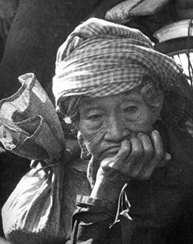 Je suis venu photographier mère Khanh au hameau de Tám Ngàn, dans la commune de Bình Sơn, dans le district de Hòn Đất, province de Kien Giang. Elle avait 7 enfants qui sont tous partis au front sans jamais revenir. Lorsque je suis venu la voir, le corps d’armée numéro 4 venait de lui faire construire une très belle maison. Je n’oublierai jamais cette image qui m’a frappé au premier abord: plus la maison était vaste, plus la mère était seule. Elle se blotissait dans un coin, à côté d’une marmite de riz, d’un chat, d’un morceau de poisson rôti et de quelques brins de légumes. En me voyant approcher dans mon uniforme militaire, elle s’est précipitée sur moi qu’elle prenait pour un de ses enfants. Nous sommes alors, tous deux, fondus en larmes. J’ai été absolument incapable de la prendre en photo. Ce n’est qu’à la 4ème visite que j’ai pu enfin la photographier. Et c’est décidément l’une de mes photos préférées.