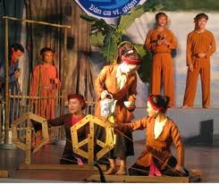 | Chant alterné, le Ví Giặm implique la participation de deux ou trois personnes qui chantent des vers de fable rythmés par des castagnettes |